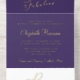 Elegant purple 50th birthday party all-in-one invitation featuring "50 & Fabulous" and your name in calligraphy scripts, your party details in simple modern lettering, and a white tear-away RSVP postcard, all rendered in your choice of genuine gold, silver or rose gold foil.