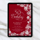 Elegant 50th Birthday Red Silver Roses Invitation