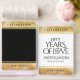 Celebrate the 50th golden wedding anniversary with this commemorative foil vow book set! Elegant lettering with hexagonal confetti on faux gold foil and black (or white) backgrounds add a memorable touch for this special occasion and extraordinary milestone. Personalize with couple's names, dates of marriage, and messages.