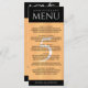 Add sophistication to 5th wood wedding anniversary celebrations with this dinner menu, which features elegant lettering on faux, light wood grain and black backgrounds. Customize with couple's names, dates of marriage, venue details, menu items, and congratulatory messages.