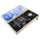 Make the 65th blue sapphire wedding anniversary an unforgettable celebration with this commemorative cornhole set! Elegant lettering with hexagonal confetti on sapphire blue and black backgrounds add a memorable touch for this special occasion and extraordinary milestone. Personalize with couple's names, dates of marriage, and congratulatory messages.