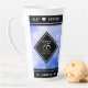 Celebrate the 65th blue sapphire wedding anniversary with this stylish latte mug! Elegant white lettering with hexagonal confetti on a sapphire blue background edged by black bars add a memorable touch for this special occasion and extraordinary milestone. Personalize with the couple's names and years of marriage.