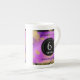 Celebrate the 6th amethyst wedding anniversary with a couple of these commemorative bone china mugs! Elegant lettering with gold-dusted hexagonal confetti on an amethyst purple background add a memorable touch for this special occasion and milestone. Customize with the couple's names, dates of marriage and congratulatory messages. Reverse shows identical design.