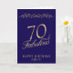 Blue Elegant 70 and Fabulous Ornament 70th Birthday Card. 70 and fabulous text in trendy golden script and an elegant ornament on dark blue background. Personalize it with your name and your age, and make personalized elegant birthday card. Add your birthday note inside the card or erase it.