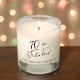Chic 70th birthday scented candle for her birthday gift or party decor. "70 & Fabulous" is written in an elegant script. Personalize with her name.