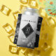 Celebrate the 70th platinum wedding anniversary with this stylish can cooler! Elegant black and white lettering with hexagonal confetti on a platinum foil background add a memorable touch for this special occasion and extraordinary milestone. Personalize with the couple's names and years of marriage. Reverse shows identical design.