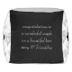 Celebrate the 75th diamond wedding anniversary with this stylish pouf! Elegant black and white lettering with stylized diamonds on alternating white, black, and grey backgrounds add a memorable touch for this special occasion and milestone. Customize with couple's names, initials, dates of marriage, and congratulatory message.