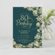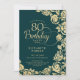 Elegant 80th Birthday Emerald Green Gold Roses Invitation