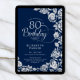 Elegant 80th Birthday Navy Silver Roses Invitation