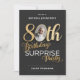 Elegant 80th Birthday Surprise Party Program. A sleek design with clear, easy-to-read text, ensuring that all the important details are conveyed effortlessly. The addition of faux foil accents in dazzling gold against a backdrop of black creates a striking visual effect, adding a touch of luxury to the overall look. With its modern aesthetics and timeless charm, this invitation sets the stage for a memorable celebration, leaving your loved ones excited and eagerly anticipating the surprises that await. Choose this design to make a stylish statement and create an unforgettable experience for your guests.