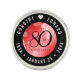 Celebrate the 80th ruby wedding anniversary in style with this commemorative lapel pin! Elegant black serif and sans serif lettering with hexagonal confetti on a ruby red background add a memorable touch for this special occasion and extraordinary milestone. Customize with the couple's names and years of marriage.