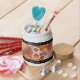 Love is sweet, and what better way to celebrate the 8th bronze wedding anniversary than with this commemorative candy jar! Elegant black and white lettering with hexagonal confetti on a bronze foil background add a memorable touch for this special occasion and milestone. Personalize with couple's names, dates of marriage, and congratulatory messages.