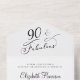 Elegant and chic ninetieth birthday party all in one invitation with "90 & Fabulous" in a stylish calligraphy script on the inner top flap. Personalize the party invitation and details in simple modern typography and a pretty script. A tear away RSVP postcard provides a convenient and envelope-free response from your guests.