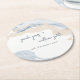 Elegant Abstract Blue Beige Coastal Beach Wedding Round Paper Coaster
