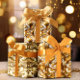 Elegant Romanesque seamlessly pattern faux gold foil abstract design trio.