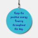 This stylish wind charm features a blue evil eye amulet in an abstract floral pattern, paired with a customizable text field that says, "Keep the positive energy flowing throughout the day!" Enhance your space with this wind charm, bringing both artistic flair and uplifting chimes of positive vibes. Personalize it to match your style or enjoy it just as it is.