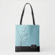 Elegant modern simple cute girly design features abstract of flower line art with turquoise color background . Custom allover print tote bag personalized with your monogram name or other text. This stylish bag will be perfect as personalized gift.