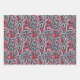 This beautiful wrapping paper set features three different abstract designs for the holidays, in shades of pink, red, pale green and navy.