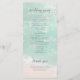 Romantic coastal themed wedding programs feature beautiful turquoise abstract watercolor sparkling ocean wave and beach background, toped with stylish script and elegant font event details, modern and simple, great for sand beach wedding, tropical destination wedding, coastal ocean themed wedding.