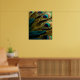 Elegant Abstract Teal Blue Gold Peacock Feathers | Poster