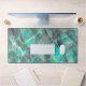 Elegant Abstract Turquoise Marble Opal Monogrammed Desk Mat