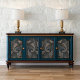Elegant Acanthus Leaf Teal & Taupe Baroque Decoupage Tissue Paper: Transform furniture with this sophisticated baroque decoupage tissue paper in rich teal and taupe. Features detailed acanthus leaf scrollwork perfect for French provincial and Victorian-inspired pieces.