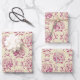Elegant Aesthetic Hydrangea Bow Pink Toile Pattern Wrapping Paper Sheets