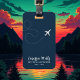 A simple, modern and elegant design with a stylized plane with dotted trail on dark blue background, personalized with the traveler name and custom words "new travel adventures".