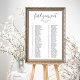 Help your guests find their place with this easy-to-navigate alphabetical wedding seating chart! Design in white and black, but both background and text colors can be easily changed using the designing tool. Ability to add a maximum of 100 guest names, 50 on each side. For events with more guests, you can distribute the rest of your guests in a second and even third banner/sign. Ability to edit the design using the design tool and adjust it according to your amount of guests. Several size options are available. IMPORTANT NOTE: This sign is in premium poster paper style, easy to frame or glue/staple to inexpensive MDF or foam board for display. If you prefer this sign prepared for display already on a foam board, please follow these easy steps: on this sign product page, scroll up, until you see a section with images called "Transfer design to a product". Use the arrow on the images to look at all the options, until you reach the "Foam Boards" option. Click on it, and it will transfer the design into a foam board for you. Initially, sometimes it transfers the design into a very big foam board size, nevertheless, you can change the sign into the size you need right there on the product page and even see how it looks already in a stand. When you add this design to your shopping cart, it will tell you the back side is in black. Don't worry about it, as this only means that the back of the sign will be white. If you need help, please send me a message and I'll get back to you as soon as possible". Part of our "Modern Elegant Wedding and Events Signage" collection with a variety of coordinating products available.