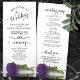 This beautiful wedding program features an elegant design with a single long stemmed amethyst purple colored rose lying on its side reflecting in water. The titles are written in fancy script calligraphy, and there is space for your ceremony and wedding party details, as well as a short thank you for your guests. Wonderful way to welcome your friends and family to your wedding celebration.