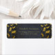 A set of address labels with a pretty pattern - black background with fancy gold feathers floating downward. Sophisticated stylish design. The center, where your address details are personalized, has a black chalkboard background with a shabby distressed look to it.