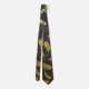 A tie with a a cool pattern - black background with fancy gold feathers floating downward. Sophisticated stylish design.