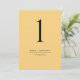 Help your guests find their table with this elegant yellow modern table number. Double sided card. Clear space all around giving you the liberty to display with table holder or frame. Attractive yellow background and black text. Several color options. Matching seating chart cards and menus available. Have all table numbers in same color or mix colors according to your event's color theme. Part of our "Elegant Yellow Event Signs and Products" collection with a variety of coordinating products available.