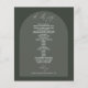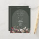 Autumn inspired floral and botanical design at bottom with green arch and background. Text is white.