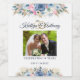 Elegant Anniversary Watercolor Floral Photo Rings Personalized Wine or Beverage Label. Gift the special couple their favorite wine or beverage or treat anniversary party guests with wine or beverage favors with these labels featuring one picture, their names in an elegant calligraphy script over gold wedding rings and spring or summer watercolor florals in blues, pinks and gold. With editable text, these labels can also be used for celebrating a wedding ceremony, wedding reception, couple's shower, engagement party or wedding vow renewal event. ASSISTANCE: For help with design modification, transferring the design to another product or if you would like coordinating items, contact the designer BEFORE ORDERING via the Zazzle Chat MESSAGE tab below or email makeitaboutyoustore@gmail.com.