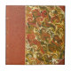 Old antique leather bound book cover binding, with ornate spiral swirl pattern.
