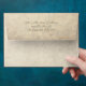 Lovely wedding invitation envelope done in an antique reproduction looking design. Dark brown script text return address, on the back flap. Personalize the text to suit your needs. Lovely finishing touch to our Antique Sunflower Wedding Invitation sets.