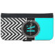 Elegant Aqua and Black Chevron Monogrammed iPhone Wallet Case
