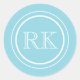 Elegant Aqua Blue Script Professional Monogram Classic Round Sticker