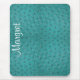 Lovely ladies mouse pad, with graphics of a aqua colored ostrich leather look. Bold white script text, running vertical down the left side of the mouse pad. Personalize the text for yourself or as a chic gift idea. Pretty way to dress up your desk, at home or at the office.