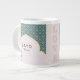 Elegant Arabesque Wedding Mug – Deep Teal & Gold Arch with Watercolor Magnolia | Luxury Jumbo Coffee Mug for Bride, Groom, Anniversary, Bridal Shower & Eid Gift.
