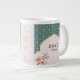 Celebrate life’s most beautiful milestones with this exquisite personalized jumbo coffee mug. Featuring a stunning deep teal and gold arabesque arch set against a hibiscus-pink wedding sheen background. The design is also adorned with gentle watercolor magnolia blooms—symbols of grace, purity, and new beginnings.