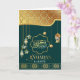 A beautiful and elegant islamic lanterns and golden teal turquoise Arabic Calligraphy Ramadan Kareem greeting cards for celebrating the greatest month of Ramadan. Design features a beautiful and stylish Arabic Calligraphy, colorful lanterns, golden geometric golden floral border, geometric golden islamic pattern on green background. Send your love and wishes to your family, friends and loved one's by our beautiful and stylish cards. You can easily change the text or remove by clicking personalised this template.