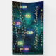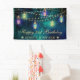 Beautiful turquoise and purple color palette. Elegant hanging lanterns and fairy lights. Custom name in cursive. Ideal for indoor or outdoor birthday decorations. Fully customizable text and layout.