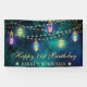 Illuminate her milestone birthday with this enchanting Arabic lantern-themed birthday banner. Featuring glowing lanterns strung with twinkling lights against a rich teal and purple backdrop, this design exudes Moroccan-inspired elegance. It's the perfect personalized touch to set the mood for a memorable 21st birthday celebration.