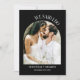 Elegant black and white calligraphy wedding announcement template card with hand lettered typography arch text with swirls that says "we said i do" with your names. Add two images to this product to make it your own. The photo will be placed on the reverse of the card alongside your wedding photograph and your desired message.
