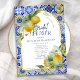 Elegant Arch Italian Blue Tile Lemon Bridal Shower Invitation
