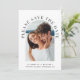 Modern wedding save the date card featuring your photo in an arched frame surrounded by "Please Save The Date" in elegant text. Under your photo, add your first names, wedding date and location. On the reverse side, personalize the save the date details in simple typography and input your wedding website URL address to create a scannable QR code for your guests to easily visit your website.