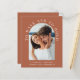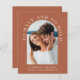 Budget-friendly all-in-one terracotta wedding invitation featuring your photo in an arch frame surrounded by "To Have And To Hold" in elegant white typography. Under your photo, add your first names, wedding date and location in modern white typography. On the reverse side, customize your invitation and input your wedding website address to create a scannable QR code for your guests to scan to RSVP online and obtain additional wedding details such as accommodations.