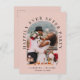 Modern blush pink elopement or private wedding announcement and reception invitation postcard that features your wedding day photo in an arch frame and "Happily Ever After Party" in elegant typography. Under your photo you can add your first names and wedding date. On the reverse you can personalize your message in more detail and add party or reception details and your names in a signature-like script.